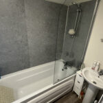 Spacious shower enclosure, vanity unit, and heated towel rail